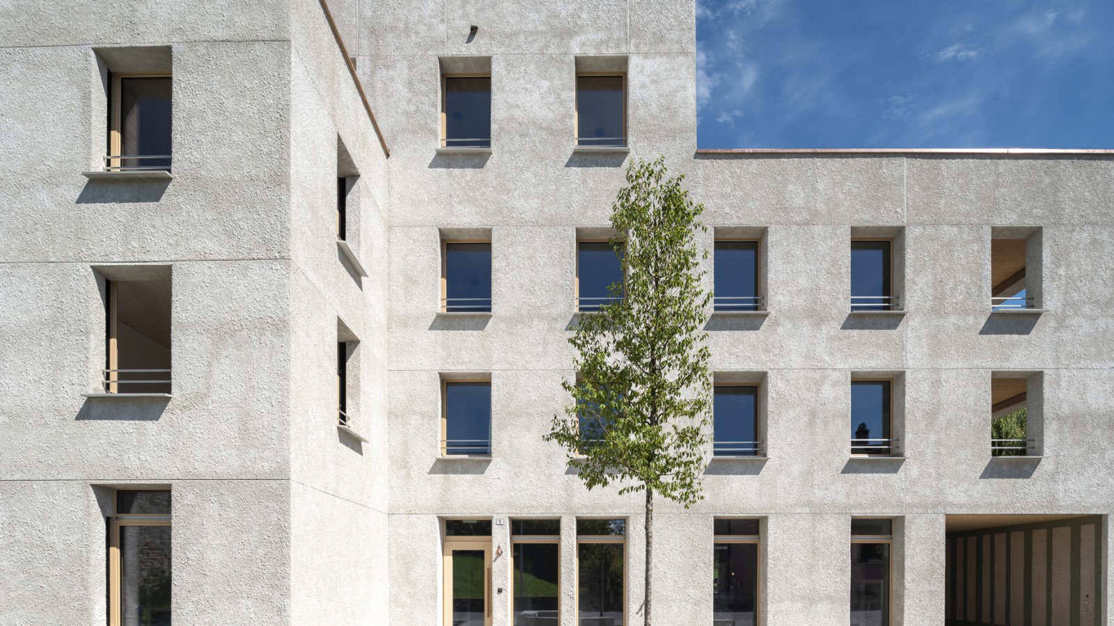 Zelf ontwikkelde materialen, zoals Cancret-hennepbeton, worden gebruikt in het project in Widnau.