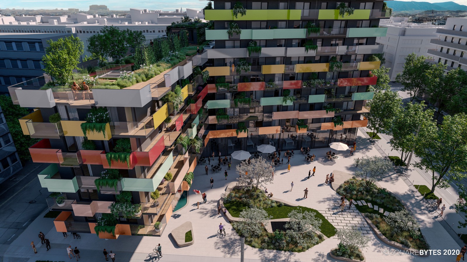 Le bâtiment coloré DS 90, situé au cœur de Vienne, comprend 382 appartements.
